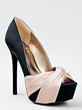 This buxom pump will elongate your legs and highlight your curves with the twisted satin knot featured over the peep-toe opening. Pumps have a sexy stiletto heel and covered platform sole to give you the height you desire.